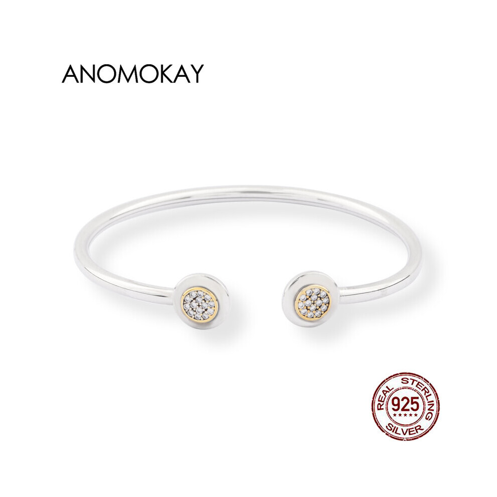 (S925 Silver Bracelet Black-18cm) Anomokay CZ Clasp S925 Silver Bracelets Bangles for Men Women Couple Jewelry Gift 100% Sterling Cuff Bangle