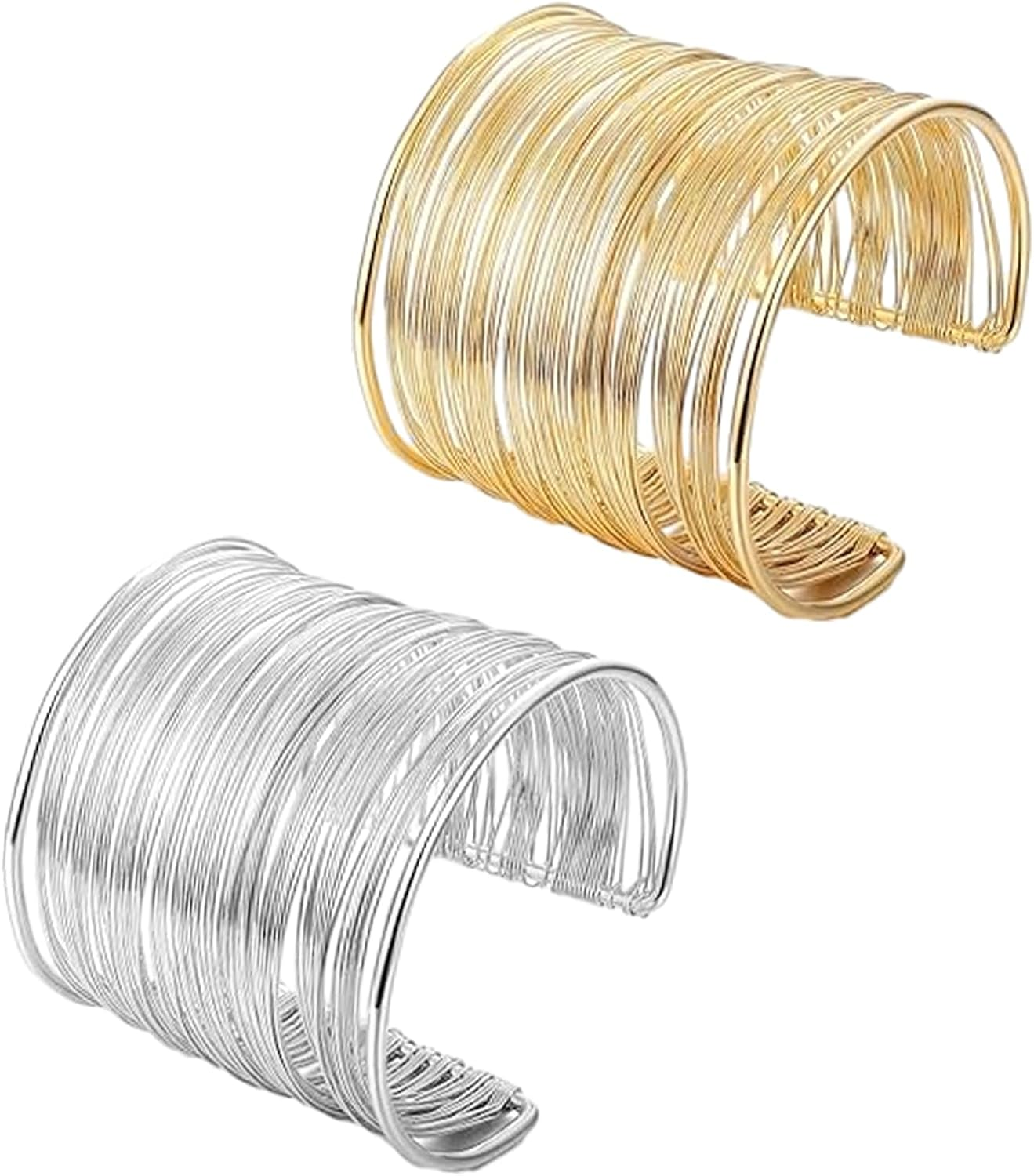 2 Pcs Bangles, Gold & Silver Bangles for Women Open Metal Wire Bangle Bracelet S
