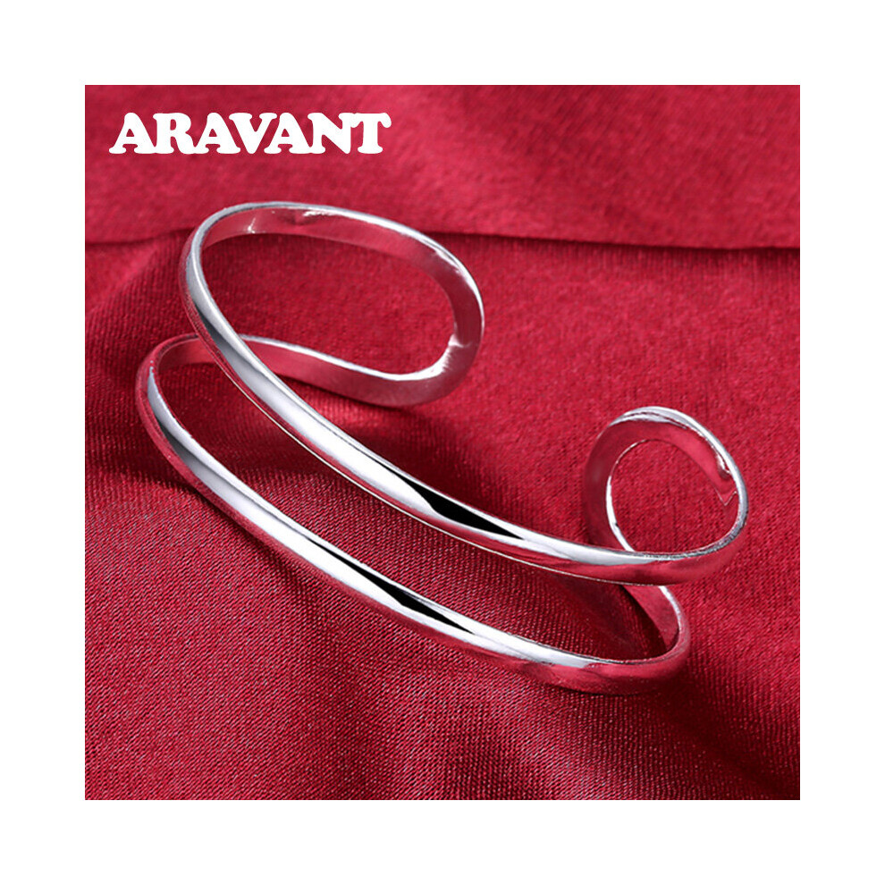 925 Sterling Silver Cuff Bangles For Women Open Polishing Glaze Whirl Lucky Bracelet Jewelry GaaBou