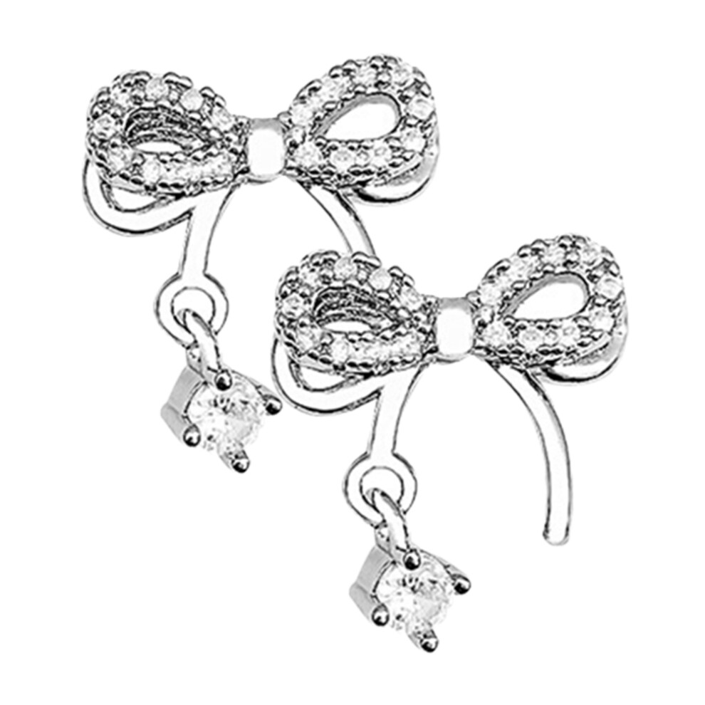 Silver Bow Stud Earrings Women's Zircon Earring Jewelry