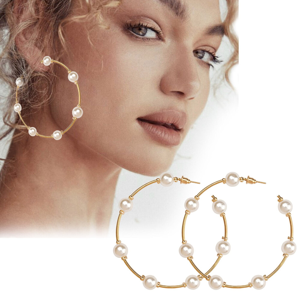 Wedding Pearl Dangle Earrings, Heartbeat Hoops with Pearls, Elegant Gold/Silver Bow Earrings for Women â Compatible with Valentine's & Bridal