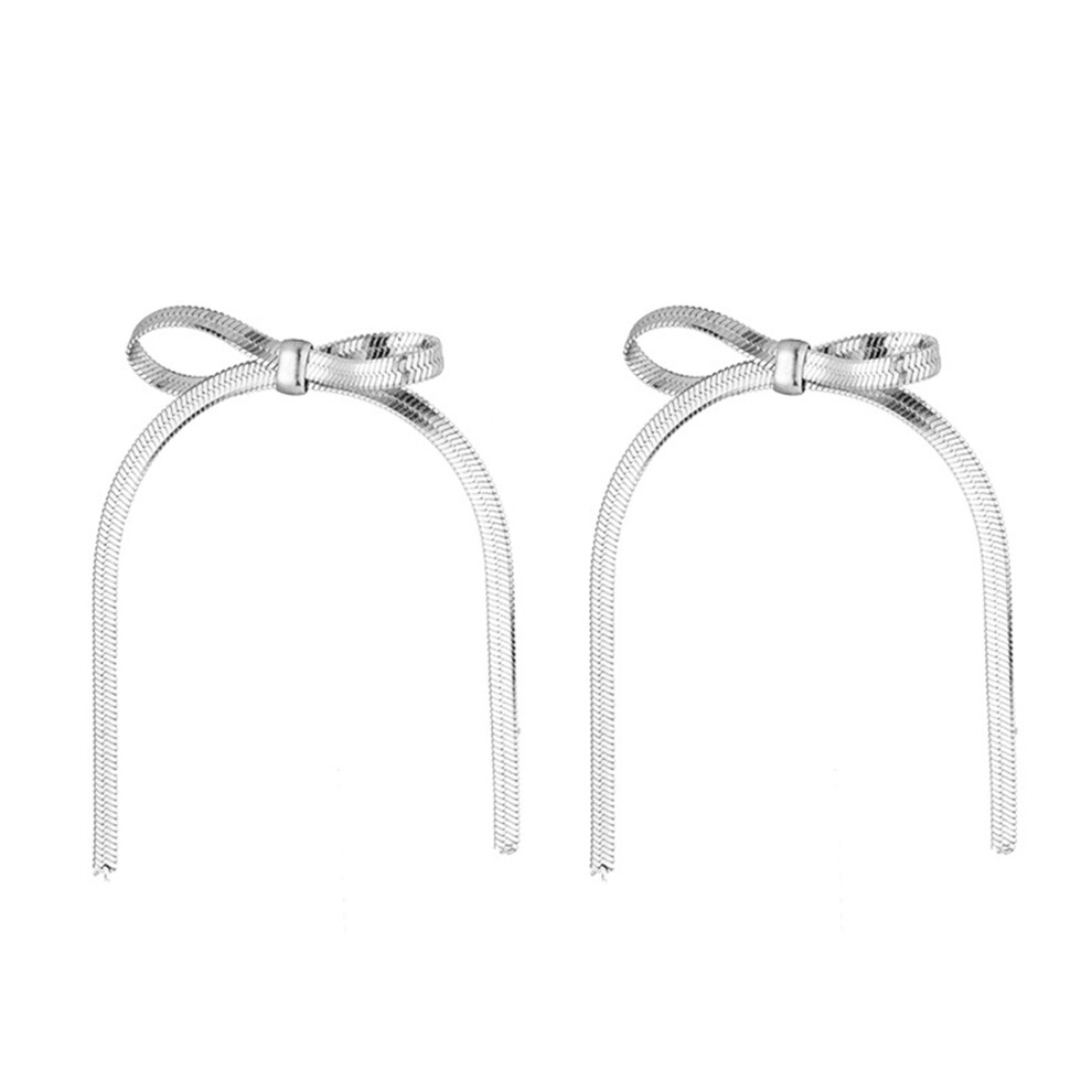 (Silver) Bow Drop Dangle Earrings, Bow Earrings For Women Girls, Long Tassel Earrings Snake Chain Earrings, Ribbon Earrings