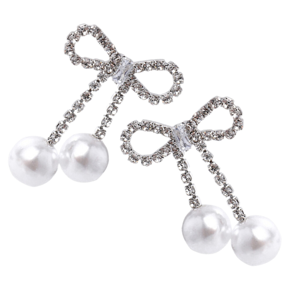 4Pairs Trendy Silver Bow Earrings Pearl Rhinestone Decorative Earrings