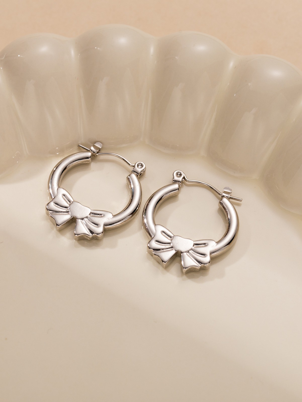 Silver Bow Hoop Earrings | Cute Heart Bow Jewellery Gift for Women Girls Trendy