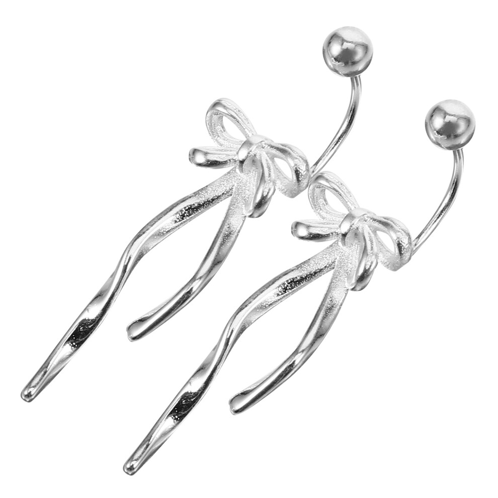 2Pairs Silver Bow Earrings for Women Elegant Metal Bowknot Ear Decors