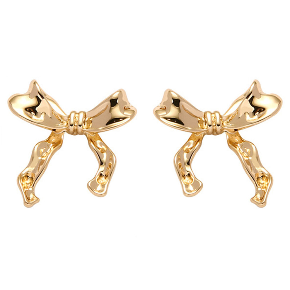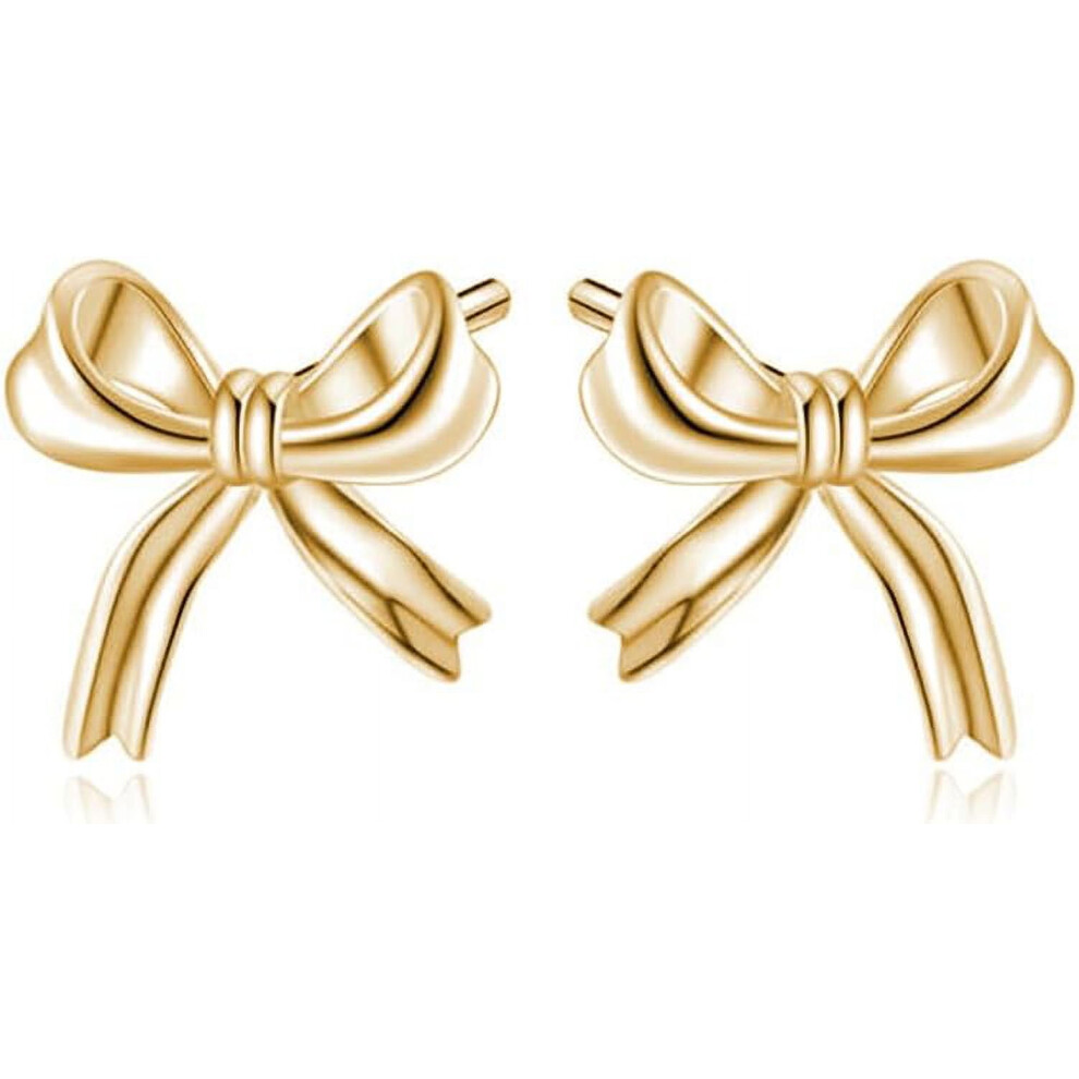 Reffeer 925 Sterling Silver Bow Stud Earrings for Women Teen Girls Cute Earrings Bowknot Earrings Ribbon Studs (B-Gold)
