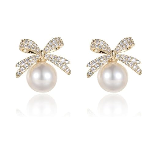 GAUEIOUR Pearl Bow Earrings,Silver Needle Imitation Pearl Earrings,Rhinestone Cute Alloy Ribbons Drop Earrings,Light Luxury Exquisite Niche Jewelry