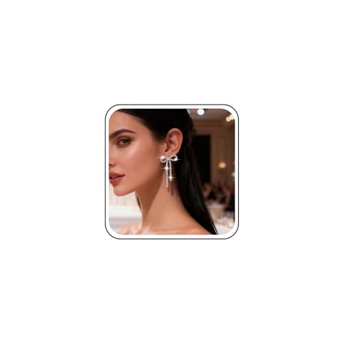 ecozran Silver Bow Earrings for Women Trendy Sparkly Rhinestone Dangle Drop Earrings Lightweight Hypoallergenic Silver Jewelry Perfect for Prom Weddin