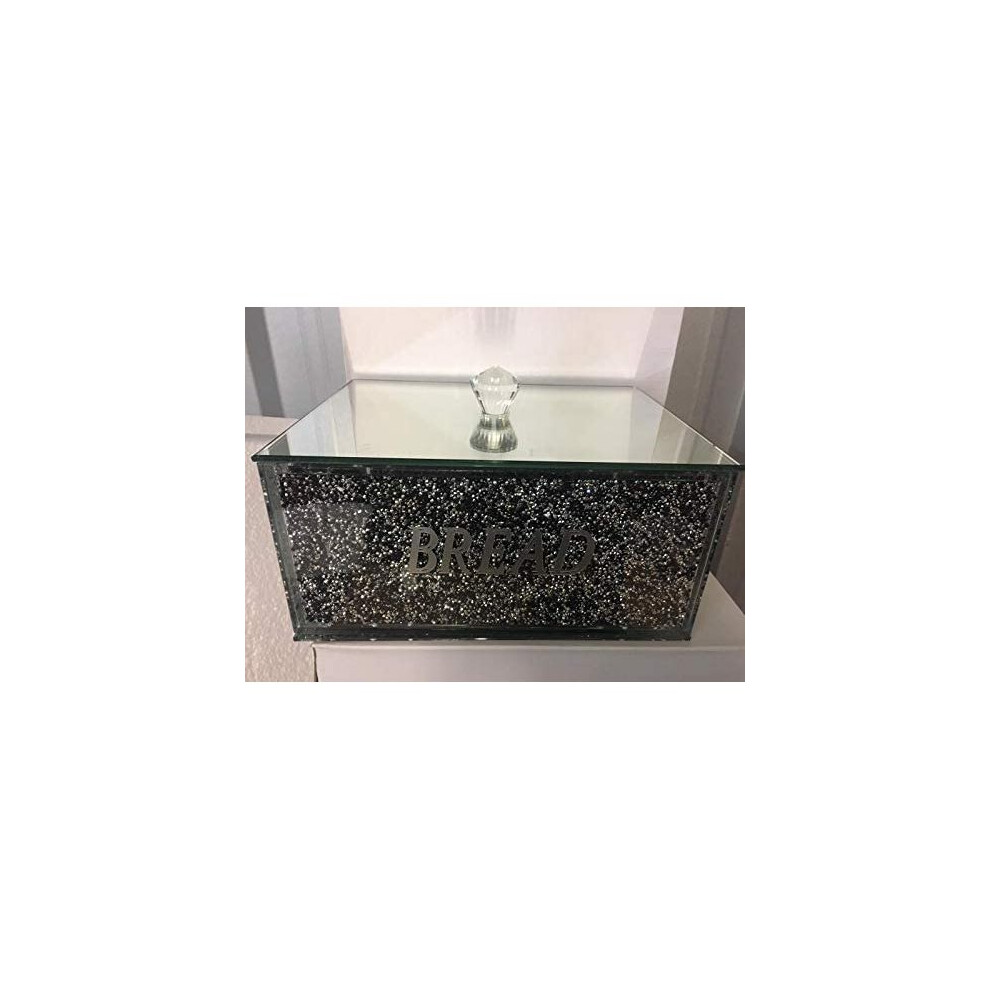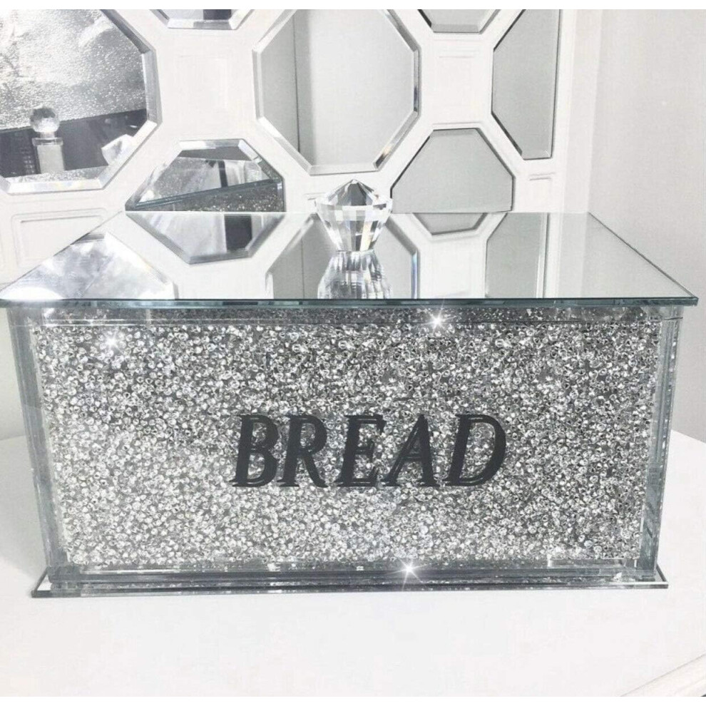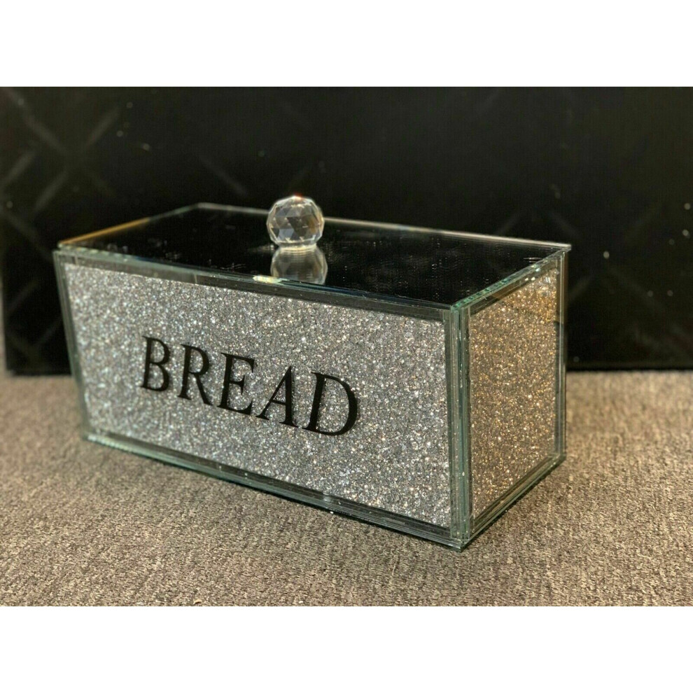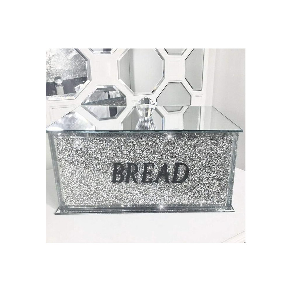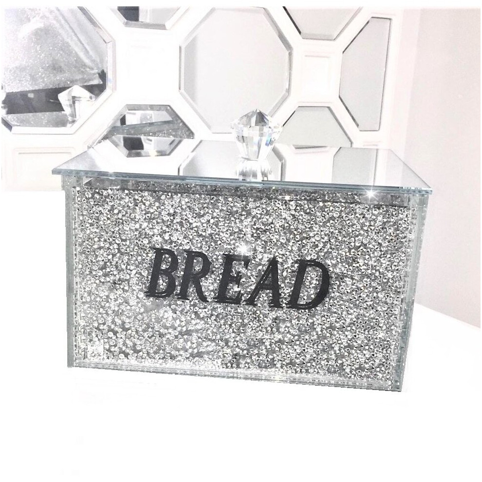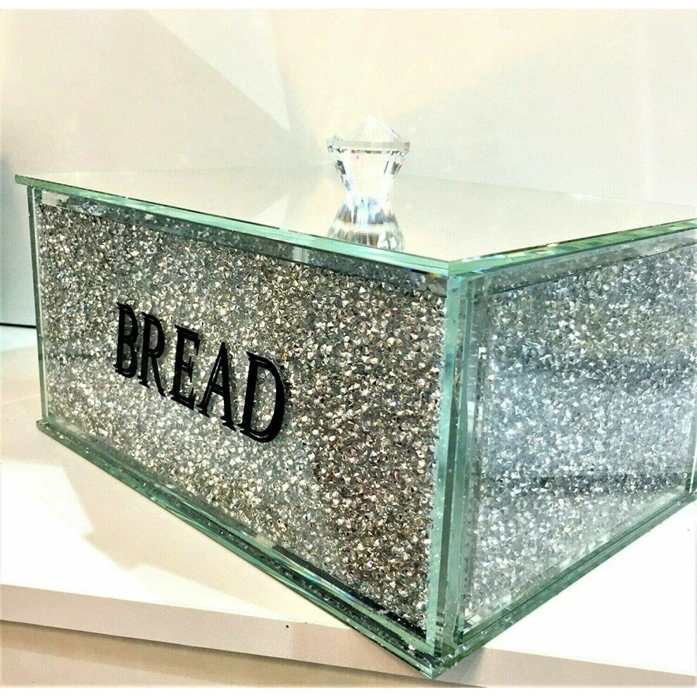 XXL Bread Bin Crushed Diamond Crystal filled Mirrored Storage Kitchen Container