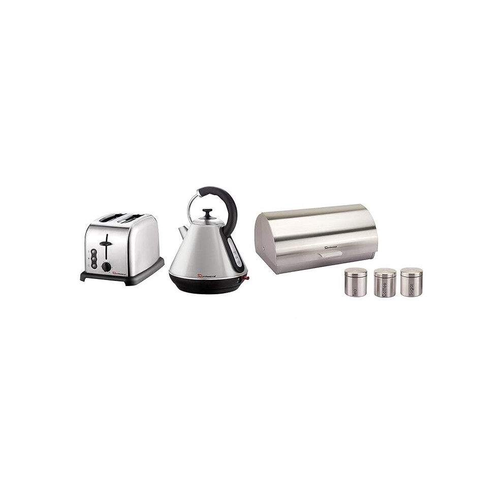 6PC Set of Electric Kettle, Toaster, Bread bin & 3 Canisters - Silver