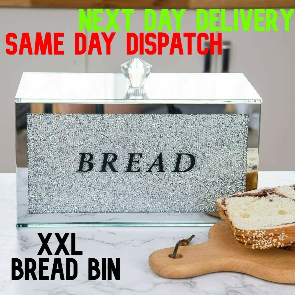 XXL Silver Crushed Diamond Crystal Mirror Bread Bin Container Kitchen