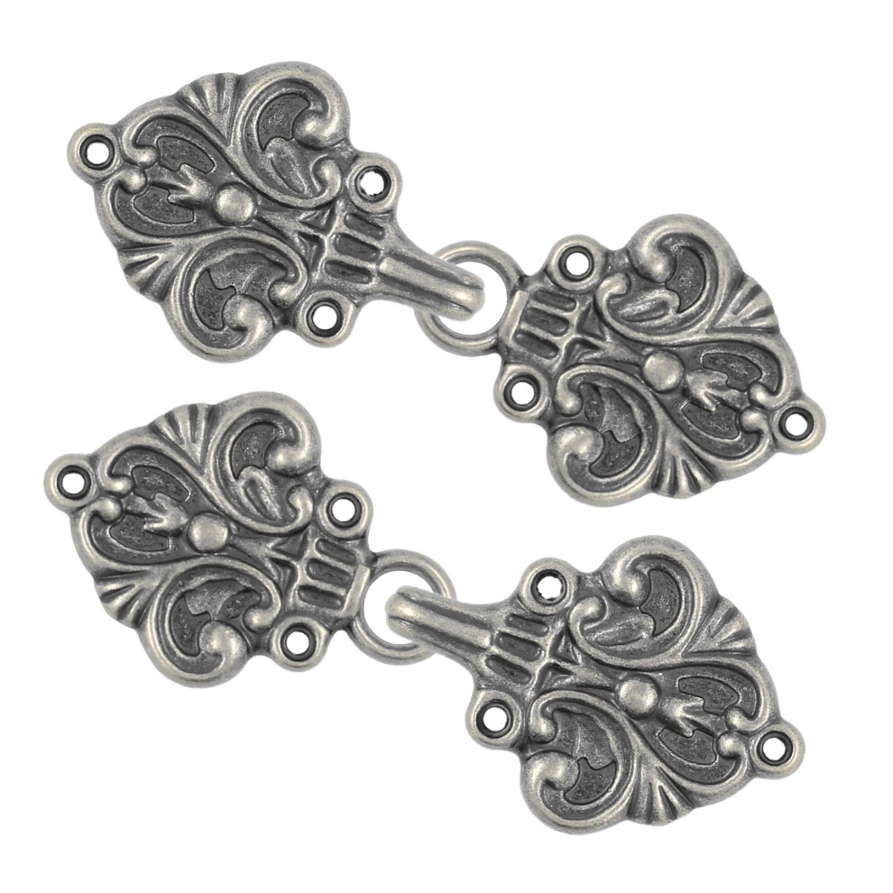 Bezelry 4 Pairs Fleur De Lis Cape or Cloak Clasp Fasteners. 70mm x 26mm. Fastened. Sew On Hooks and Eyes Cardigan Clip (Gray Silver)