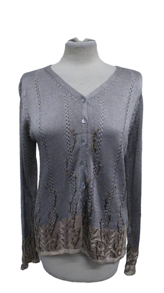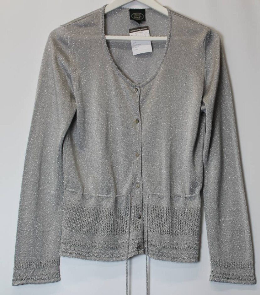 Sigrid Olsen Chainmail Esque Knit Cardigan Silver Steel Size: M