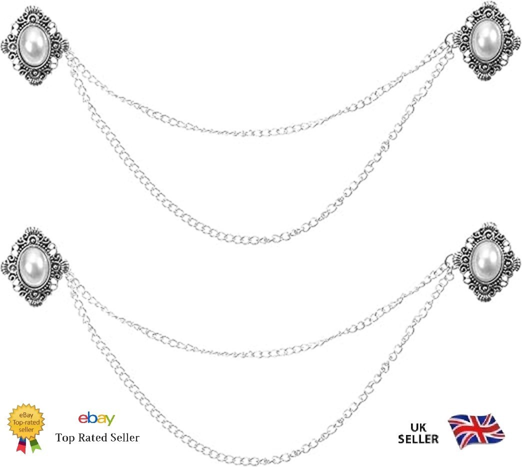 2pcs Silver Sweater Clips Vintage Cardigan Collar Clips with Chain for Women ✅
