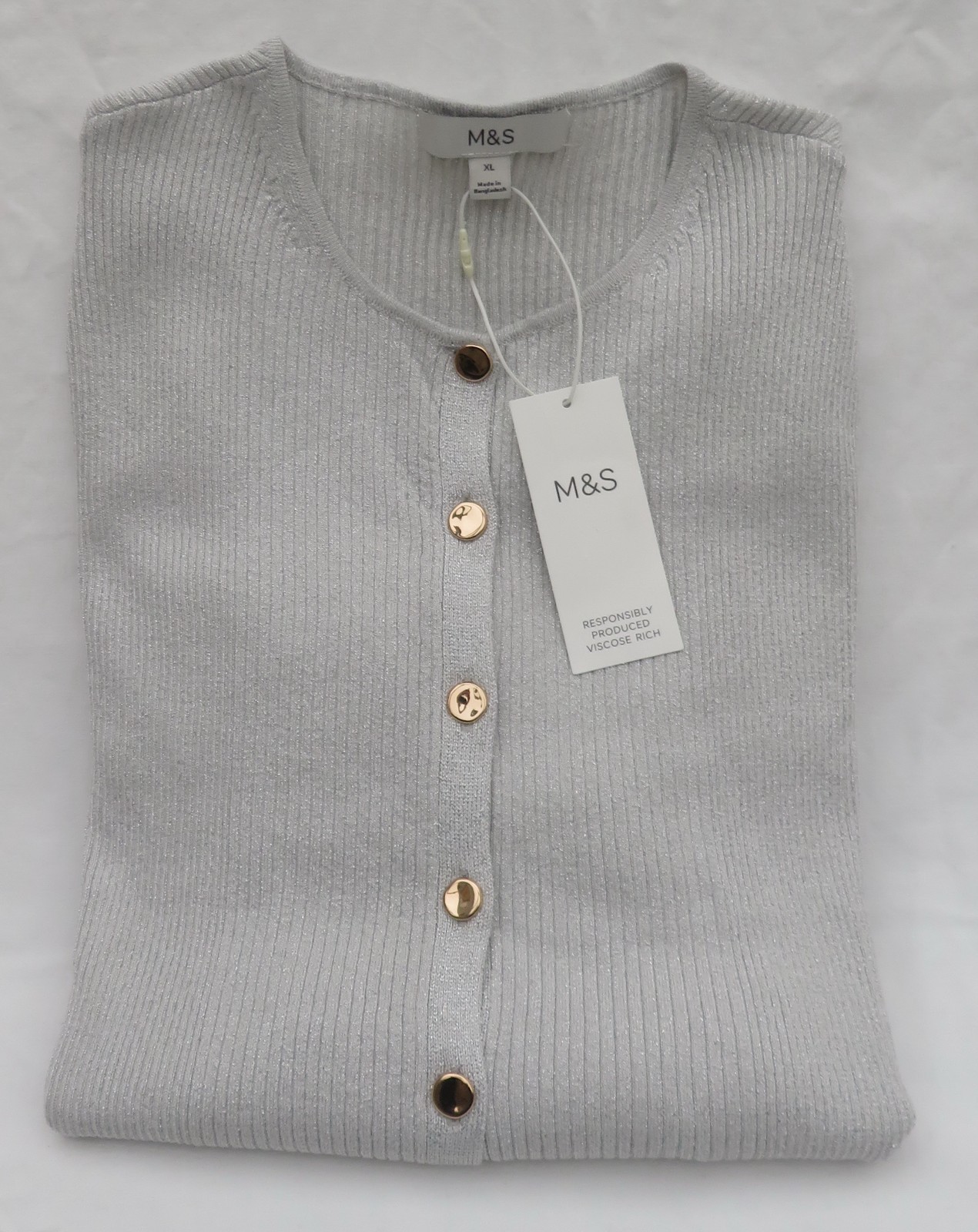 LADIES MARKS AND SPENCER SILVER GLITTER RIBBED LONG SLEEVED CARDIGAN SIZE XL