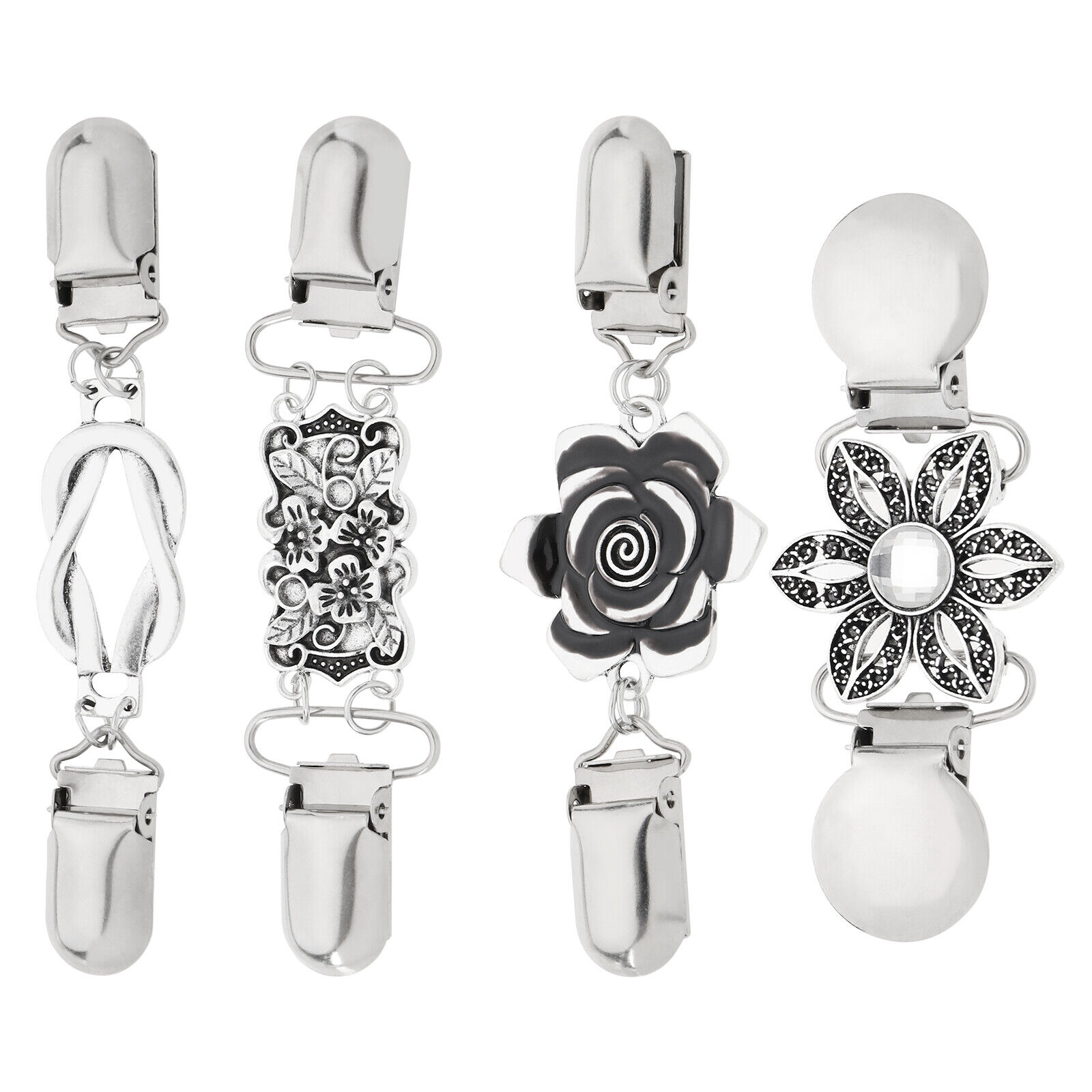 4PCS Vintage Cardigan Clips Antique Silver Shawl Clips Cloak Clasp Decoration