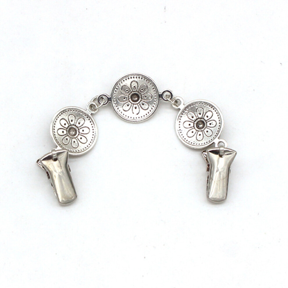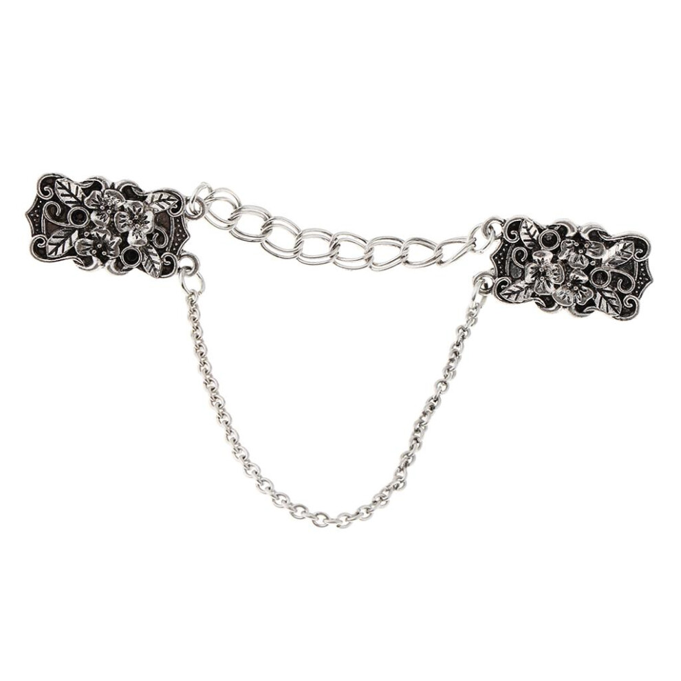 (As show, One size) Antique Silver Flower Cardigan Clips Shawl Shrug Sweater Collar Clasps Chain