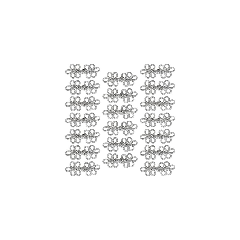 20 Pairs Chinese Knots Frog Buttons Closure Sewing Fasteners Costumes Buttons for Taoist Clothing Cheongsam Cape Cloak Sweater Cardigan Shrug Silver