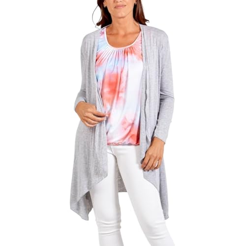 SXME MIGHT SAY Women's Plus Size Waterfall Cardigan, Long Sleeve Open Front, Jersey Top, Hanky Hem, Ladies Long Sleeve Boyfriend Cardigan (Silver, 24-26)