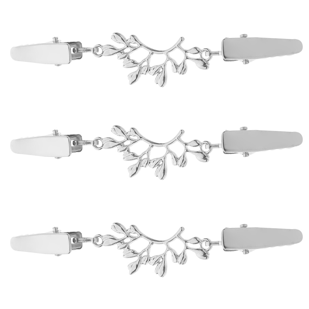 6Pcs Durable Zinc Alloy Silver Women Cardigan Collar Clips Leaf Design