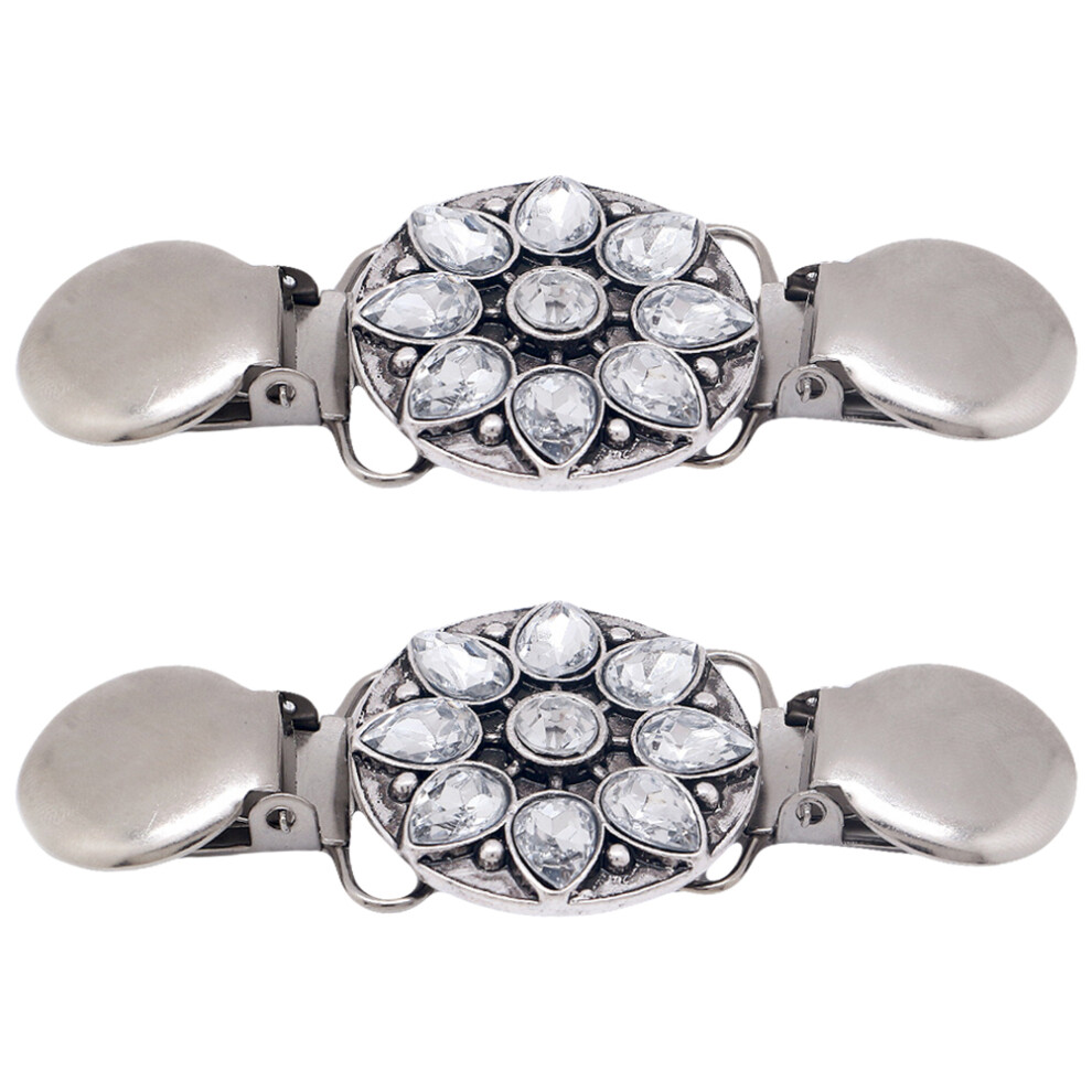2pcs Rhinestone Sweater Clips Vintage Dress Clips Cardigan Collar Clips(Silver)