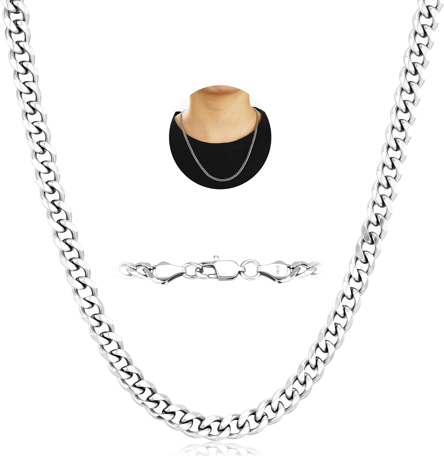 Silver Cuban Link Chain for Men Stainless Steel for Women Jewelry for Pendant Hiphop Mens Flat Curb Mens Necklaces