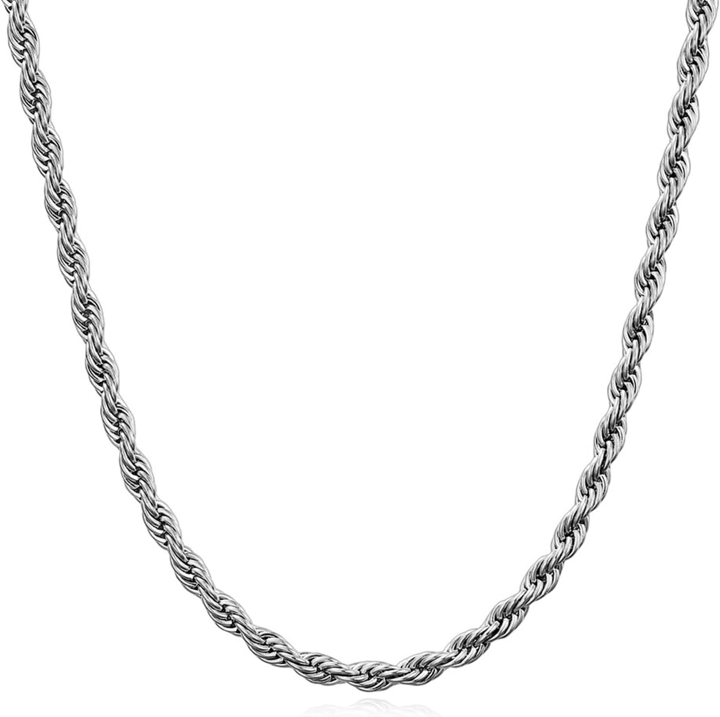 2/3/4/5/6Mm Twist Rope Chain, Stainless Steel Silver Rope Chain Necklace for Men