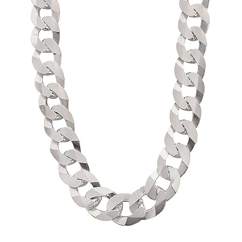 Treasure Bay 7mm Solid 925 Silver Curb Chain for Men Available in 46cm, 48cm, 50cm,52cm, 55cm and 60cm Mens Silver Chain (55)