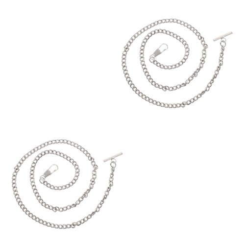 ifundom 2pcs Vintage Metal Pocket Watch Chain for Jeans Belt Silver Chain for Men Women Classic T-bar Buckle Watch