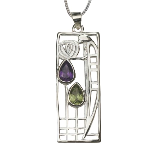 Cairn 925 Sterling silver Charles Rennie Mackintosh pendant necklace with 18" silver chain for women. Jewellery gift box included. Lover 310