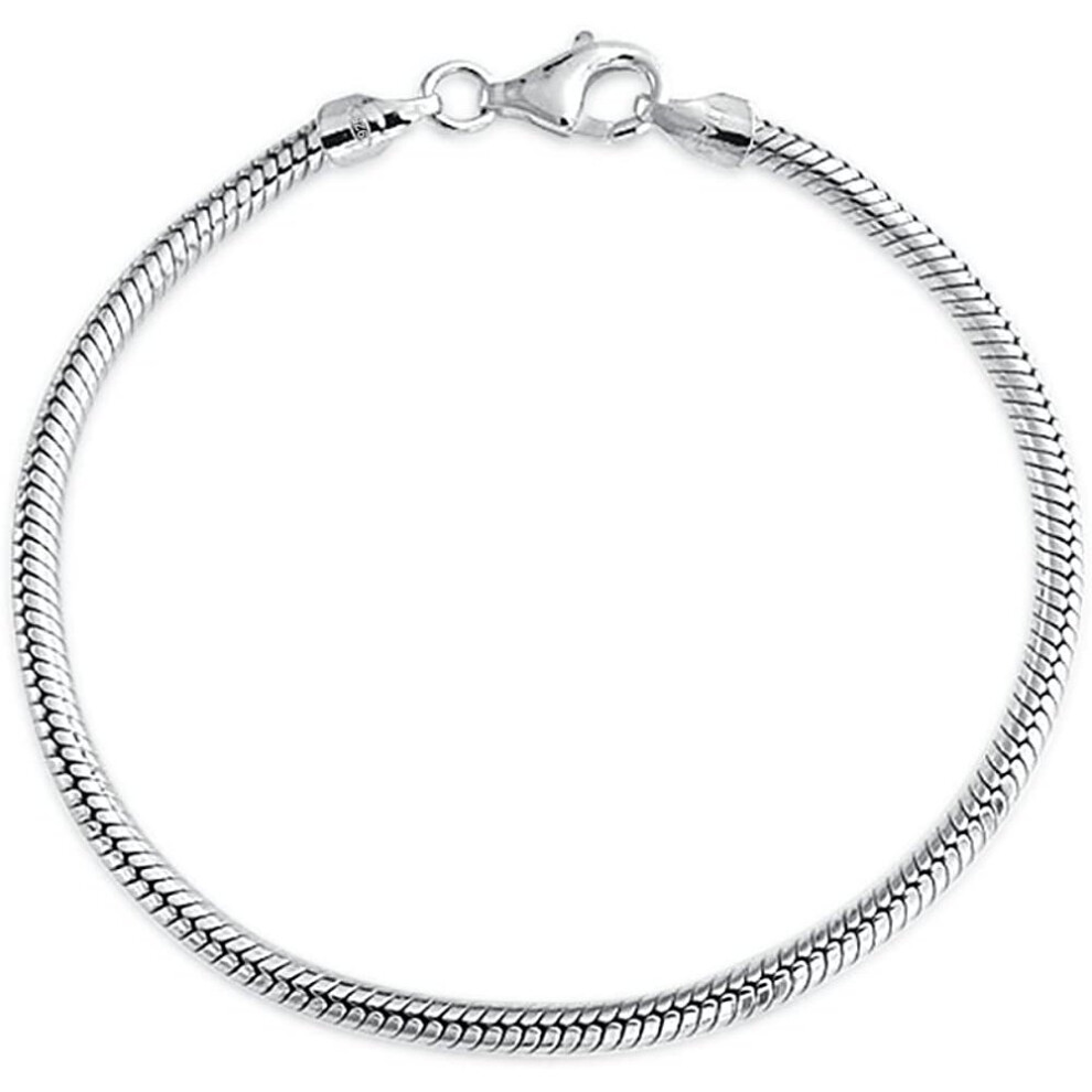Strong 925 Sterling Silver Snake Chain Bracelet For Women Teen Lobster Claw Clasp Fits European Charm Beads 7 8 9 Inch