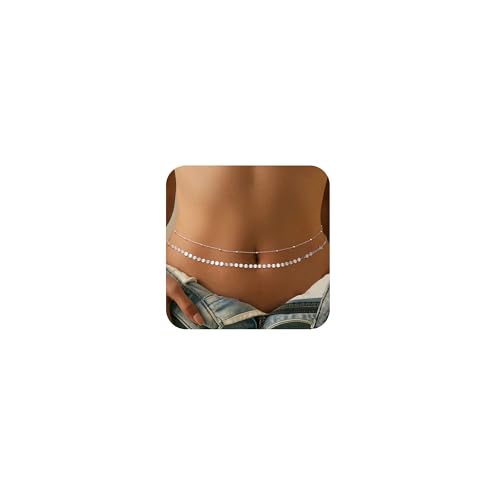 LunarCharm Double Layered Silver Belly Chain for Women in Stainless Steel, Adjustable Body Chain with Satellite, Bead and Snake Chains for Parties and Weddings