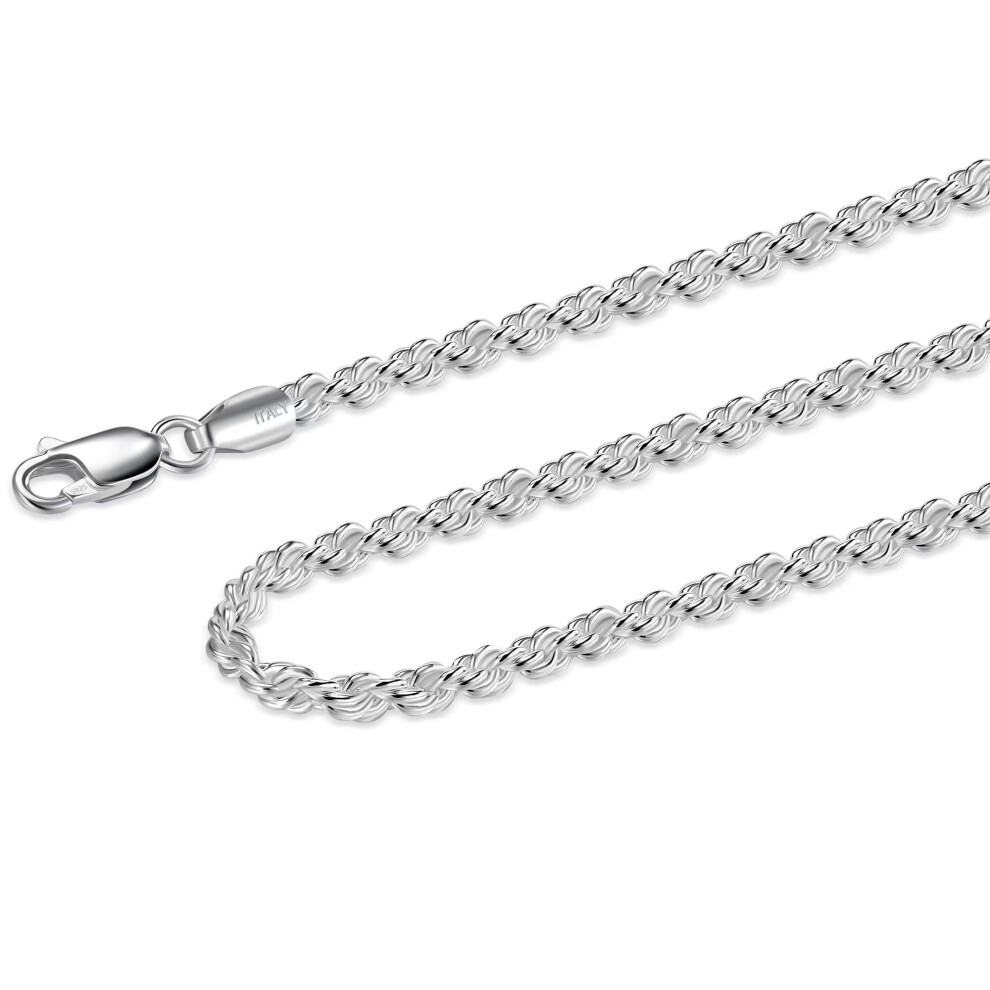 Waitsoul 925 Sterling Silver Rope Chain Lobster Clasp 3mm Silver Chain for Men Women Silver Necklace Chain 16-30 Inches(24)