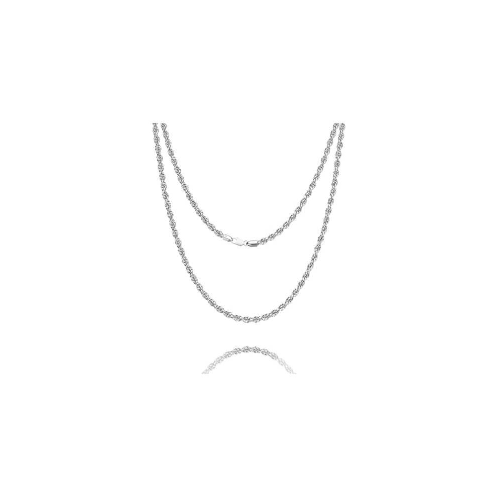 Waitsoul 925 Sterling Silver Rope Chain Lobster Clasp 3mm Silver Chain for Men Women Silver Necklace Chain 16-30 Inches(26)