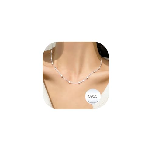Smilya S925 Silver Chain Necklace for Women Dainty Sterling Silver Bead Chain Necklace for Women Jewellry Gifts