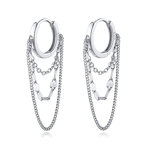Reffeer 925 Sterling Silver Hoop Earrings Chain for Women Teen Dangle Earrings Huggie Earrings Tassel Drop Earrings