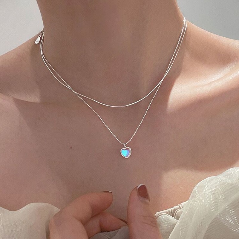 Exquisite Heart Pendant Chain Silver Necklace For Women