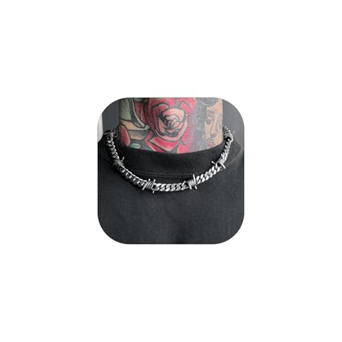 Barbed Wire Chain Silver Spike Necklace Goth Necklaces Silver Cuban Link Chain for Women Heavy Metal Necklace Cool Chains Thorn Necklaces Spiked Choker Punk