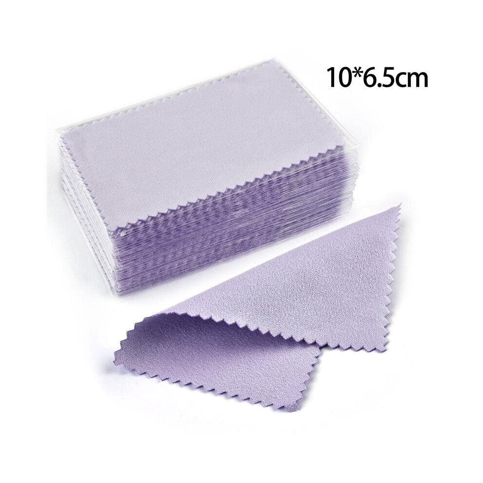 (Purple 10x6.5cm White) 50pcs Polish Polishing Cloth Silver Cleaning Polishing Cloth Soft Clean Wipe Wiping Cloth For Silver Jewelry Tool