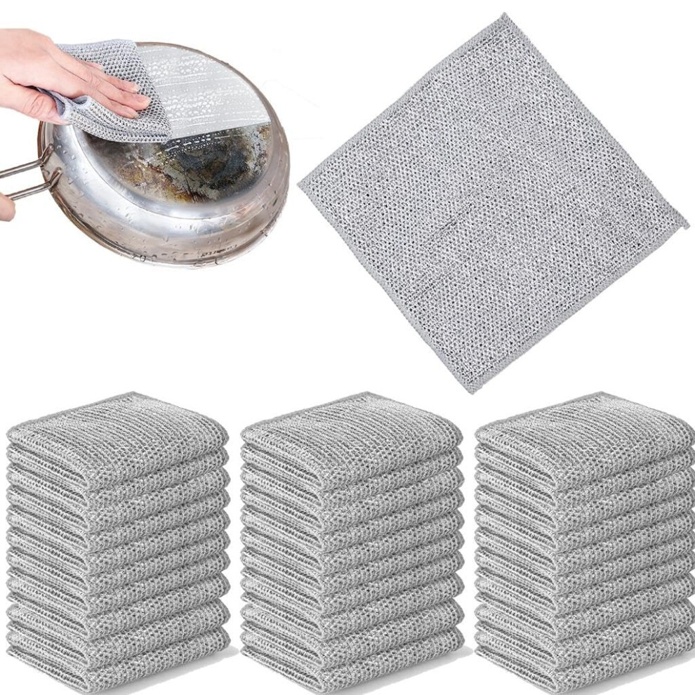 30 Pcs Multipurpose Wire Dishwashing Rags For Wet And Dry Cleaning, Silver Wire Cloth, Oil Stain Removal, Kitchen Sink