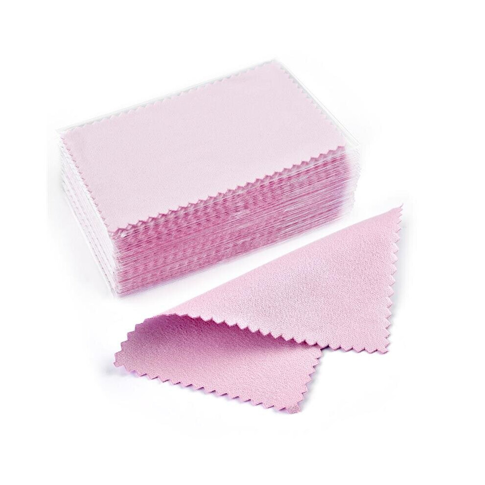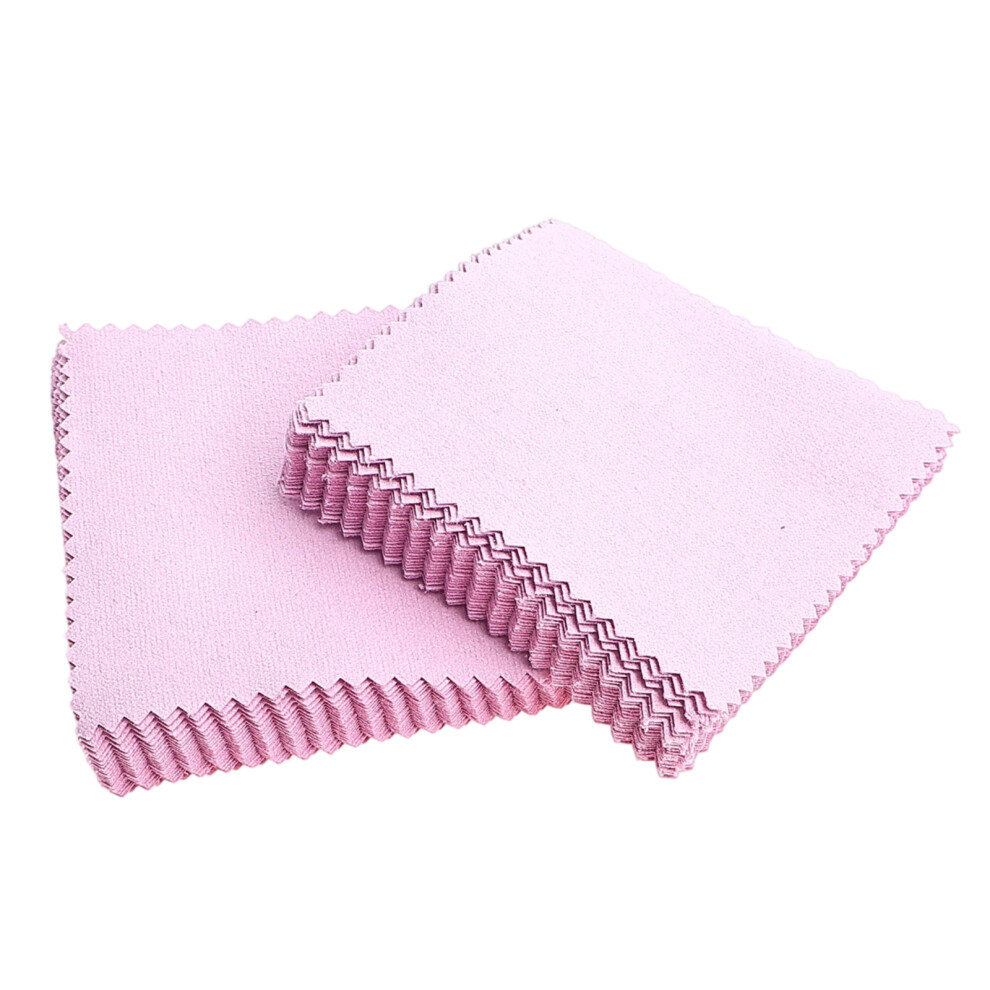 Xing 50pcs Jewelry Cleaning Cloth Suede Nap Cleaning Wipe Cloth Silver Jewelry Cleaning Cloth (Pink)