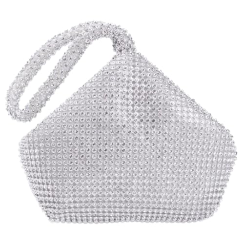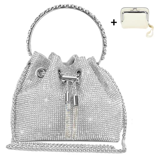 CIOUYAOS Handbag Shoulder Bag, Silver Clutch Bag for Women, Fashion Rhinestone Bucket Evening Bag for Wedding Formal Evening Prom Party Club