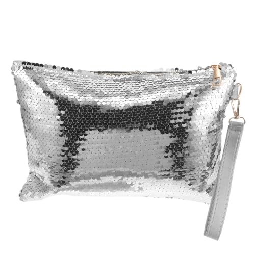 UPKOCH Silver Sequin Evening Clutch Bag Vintage Style with Wristlet, Compact Sparkly Purse for Formal Dinners and Party Nights