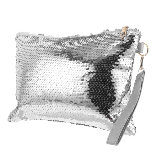 KOMBIUDA Fashion Sequins Short Purse with Zipper Portable Mini Wallet for Women Coin Storage Pouch Compact and Stylish Silver Clutch Bag for Daily Use
