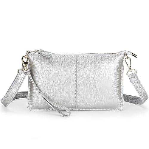 FORRICA Silver Clutch Bag for Women – Genuine Leather Cross Body Bag, Ladies Small Crossbody Phone Purse for Wedding, Evening & Party