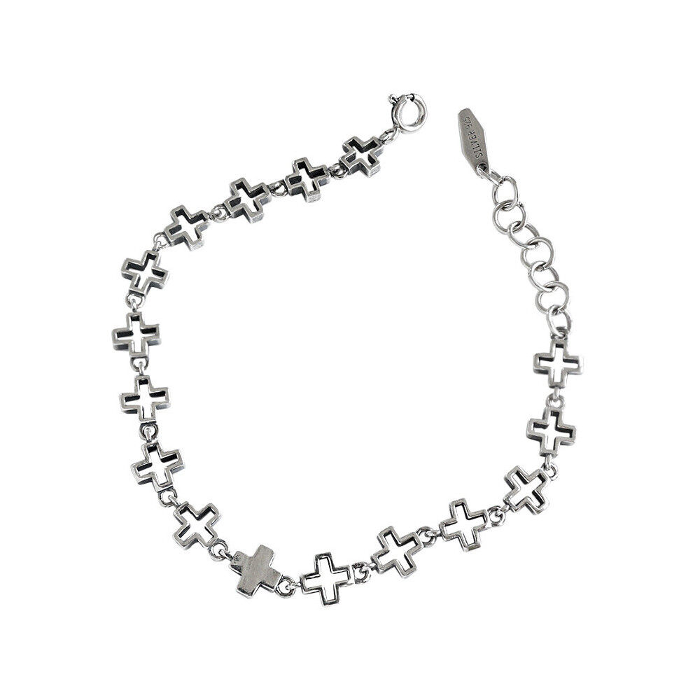 925 Sterling Silver Bracelet With Cross for Women Hollowed-out Hip Hop Chain Fine Jewelry Accessories for Party
