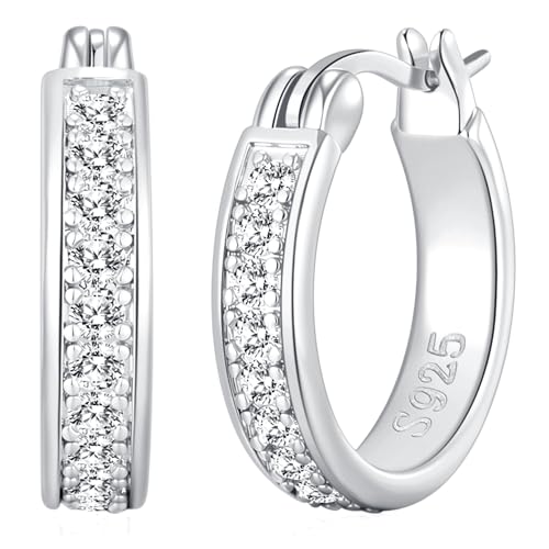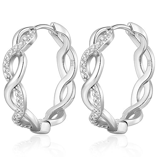 Loutade Silver Hoop Earrings for Women, 925 Sterling Silver Hoops Earrings with 5A Cubic Zircon, Simple Hypoallergenic Dainty Infinity Sleeper Cartilage Huggie Piercing Earrings for Girls Daughter