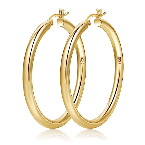 ChicSilver Gold Hoop Earrings for Women 50mm Big Large Circle Round Earrings Sterling Silver Earrings Hoops 925