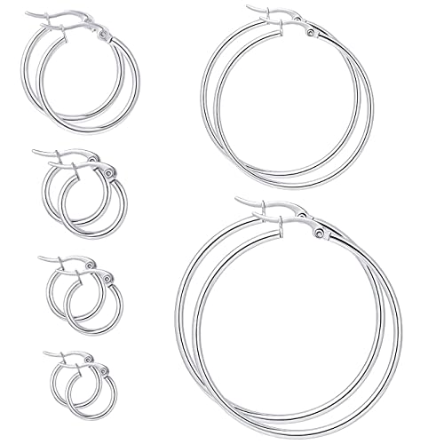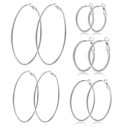 Xelparuc Silver Hoops Earrings for Women, 6 Big Pairs Stainless Steel Hoop Earrings, Thin Hypoallergenic Oversize Earrings Jewelry for Women Girls(Size: 15/20/30/40/50/60mm)