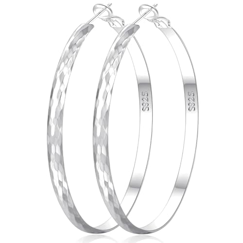 Senteria Silver Hoops Earrings for Women,925 Sterling Silver Hoop Earrings Hypoallergenic Large silvers Hoops Lightweight Big Thin Hoop Earring 70MM